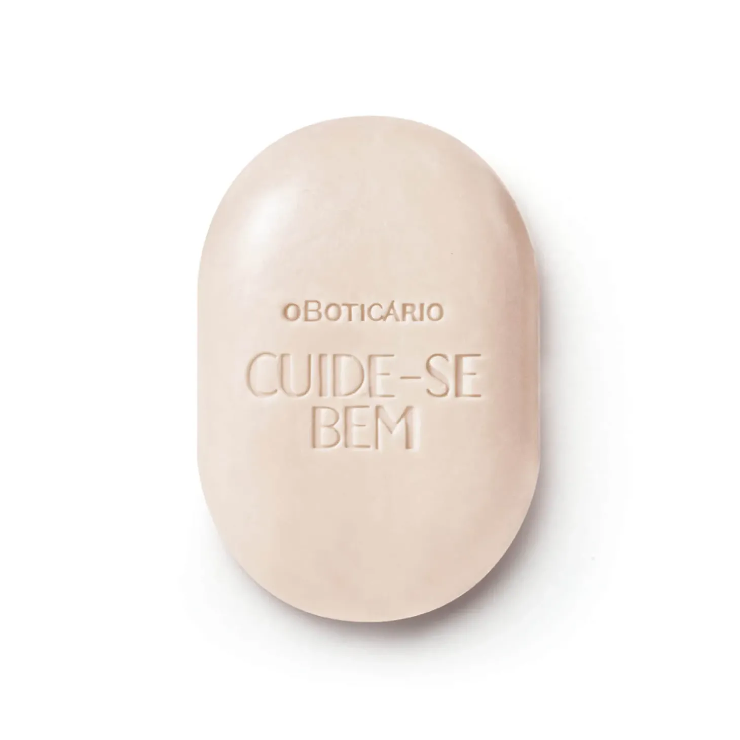 Este jabón en barra crea una espuma cremosa que limpia tu piel mientras la mantiene perfumada con la fragancia dulce y envolvente del jabón Cuide-se Bem.