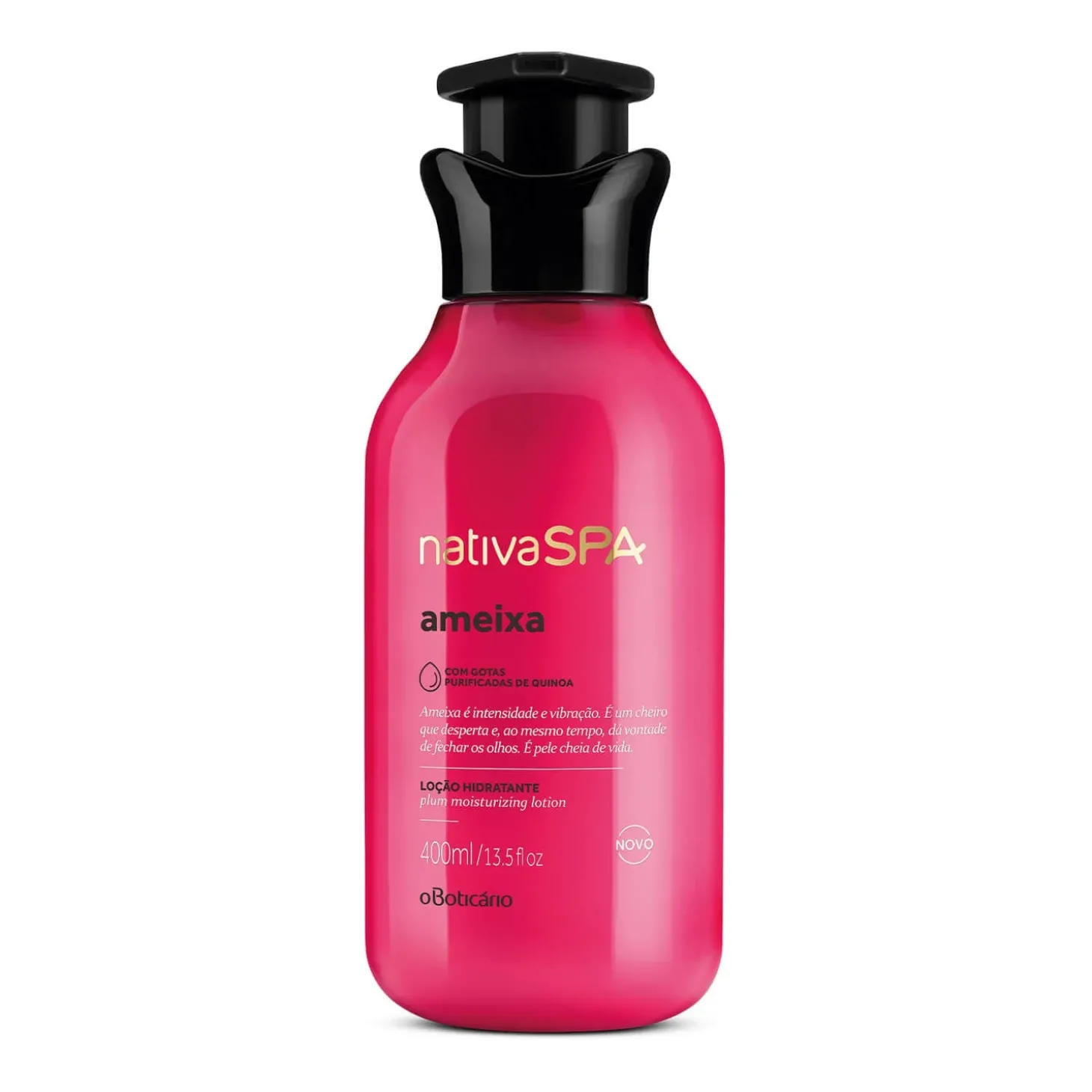 La Loción Hidratante Corporal ciruela Nativa SPA deja la piel llena de vida. Es un olor a fruta fresca recién recogida que pide ser degustada, proporcionando varias sensaciones a su piel.Con una textura ligera, esta loción corporal presenta una nueva fórmula con gotas purificadas de quinoa.Esto deja la piel suave, tersa y rejuvenecida. La nueva fórmula también aporta microcápsulas de fragancia de ciruela que se deshacen a lo largo del día, intensificando el aroma en la piel y aportando momentos de sorpresa.Ningún producto de OBoticário es testeado en animales, este producto tiene sello Cruelty Free.