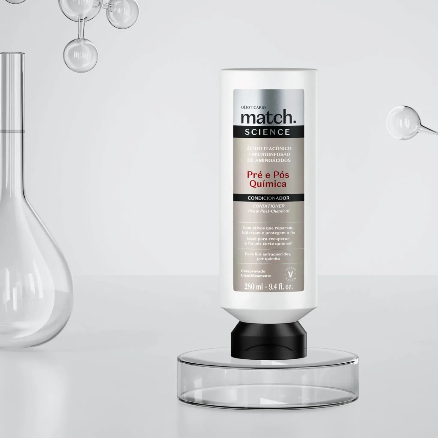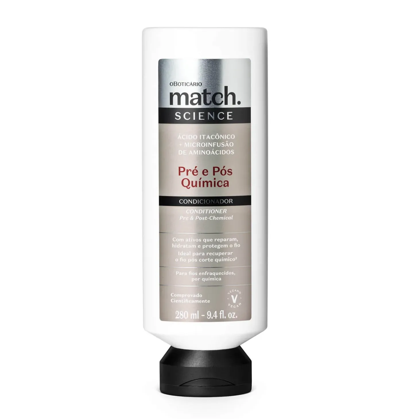 Para la línea MATCH de O Boticário, se estudiaron a profundidad los daños causados por los químicos en el cabello para crear una línea con activos de alto rendimiento y eficacia científicamente comprobada que prepara el cabello antes de recibir químicos, es decir, su uso es PRE-químicos. Y esta fórmula para el cabello dañado también trata el cabello POST-químicos, para que lo uses tras una decoloración, coloración, relajación, botox capilar, y después de otros tratamientos similares.
