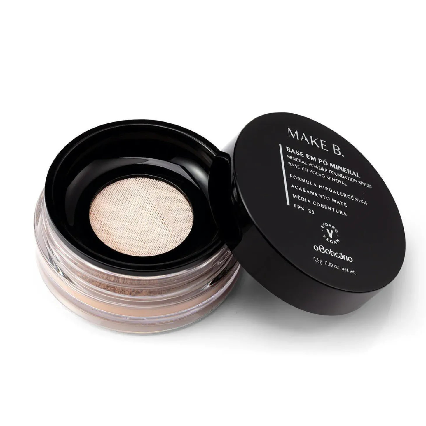 La Base en Polvo Mineral Make B. es ideal para todo tipo de piel, incluso para la piel sensible. Enriquecida con ingredientes minerales que no agreden la piel, es libre de ceras, fragancias y conservantes, y su fórmula también es Oil-Free y cuenta con FPS25.