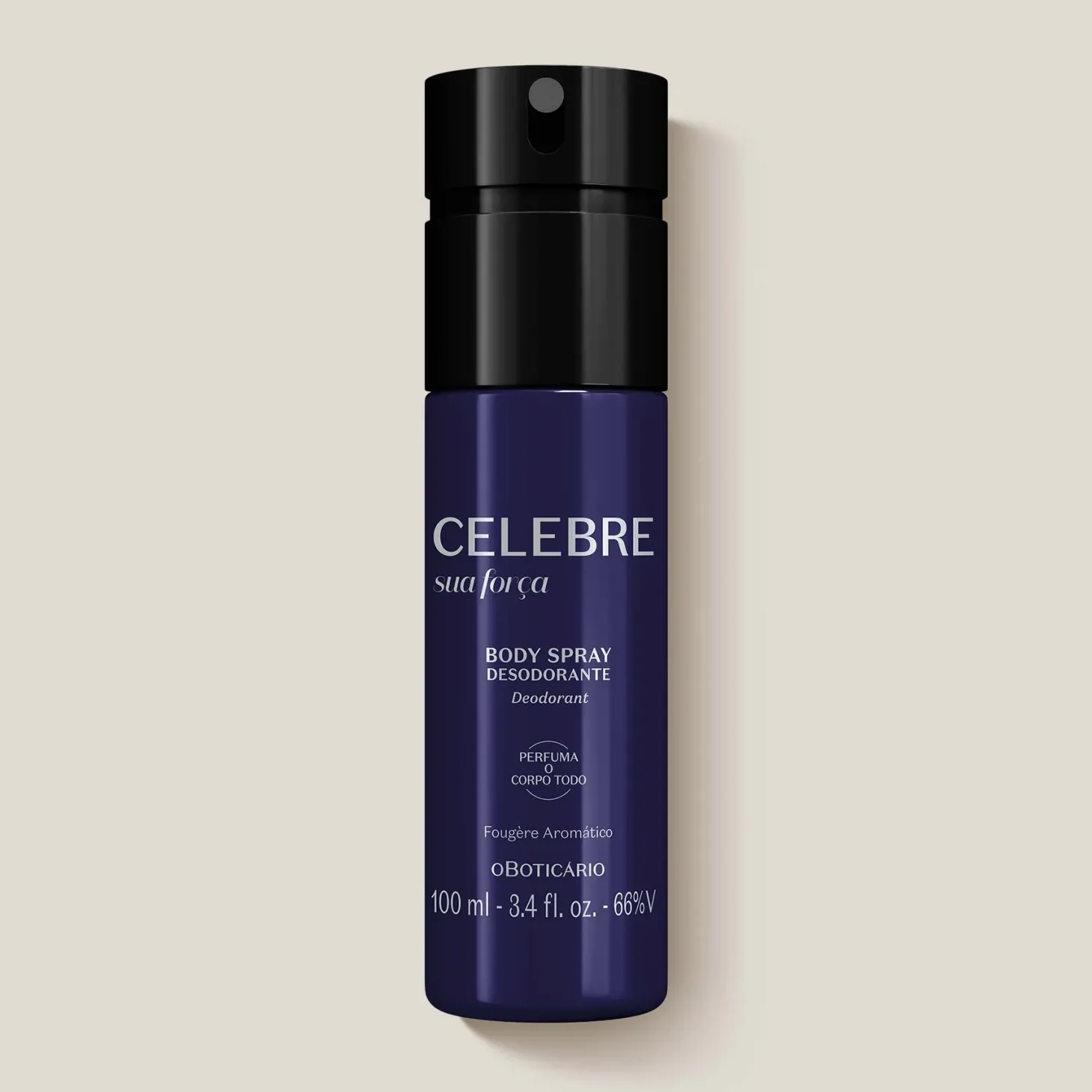 El Body Spray Desodorante Masculino Sua Força es el artículo ideal para cualquier persona que quiera completar su rutina de cuidado personal con la misma fragancia Aromatic Fougère que la Colonia Desodorante Masculina Sua Força de CELEBRE.