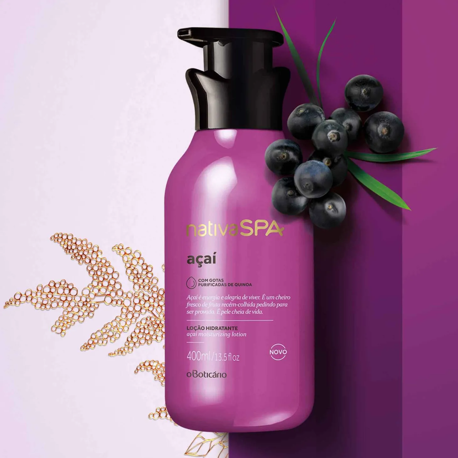 ¡Siempre es bueno mantener la piel dócil y muy bien hidratada! Nativa SPA Acaí crema hidratante corporal, es la aliada perfecta para proporcionar diversas sensaciones a tu piel. Esta crema hidratante tiene como protagonista, una delicada fragancia frutal y una aborción rápida y eficaz durante 30 horas, que seguro, ¡te va a encantar!
